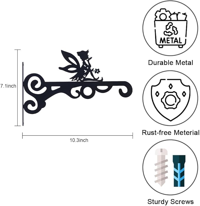 hogardeck Plant Hangers Outdoor Decor, 2 Pack 10??Metal Hanging Plant Bracket with Fairy for Garden Patio Yard Decor, Anti Rust Plant Hooks for Hanging Plants, Bird Feeder, Wind Chime, Lantern