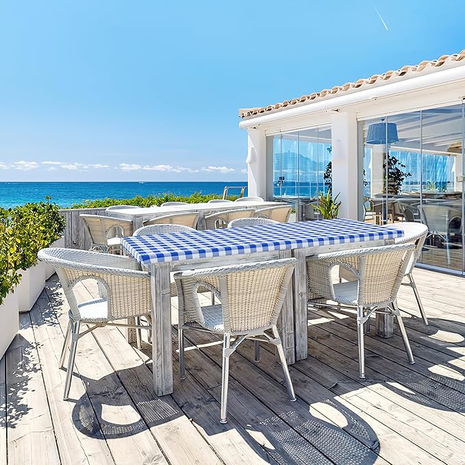 - Snug Elastic Edge Design – Stretchy hem ensures a tight, slip-free fit on any table shape. No more pulling, sliding, or tripping—stays firmly in place even in strong winds