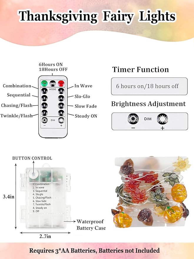- Harvest Decor and Halloween Gift: Decorate your harvest festivals, and autumn weddings with this beautiful fall lights! It's an ideal gift for friends and family. Use these cute fairy lights to decorate Thanksgiving parties indoor and seasonal home decor
