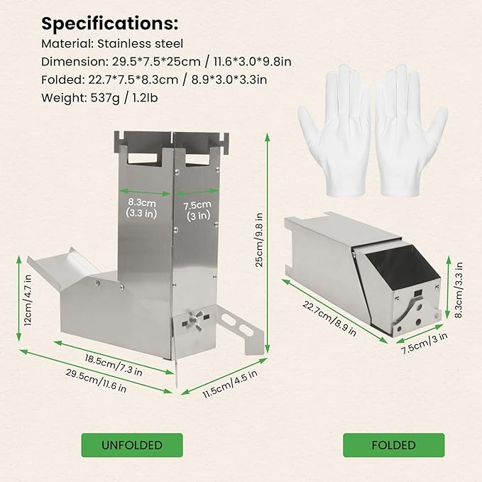 - Ultra-Portable & Lightweight: Includes storage bag & fireproof gloves. Folds down incredibly compact (8.7"x3"x3.3" / 22x7.5x8.3cm) & weighs only 1.18 lbs (537g), easily fitting any backpack for hiking, camping, or emergency kits.