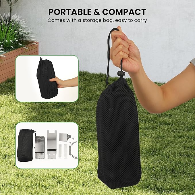 - Powerful Rocket Stove Efficiency: Jet chimney effect draws in cool air & pushes hot air upward for intense, focused flames (up to 3x hotter than campfires!), boiling water faster & saving fuel with high-efficiency combustion. Angled fuel chamber makes wood loading easy.