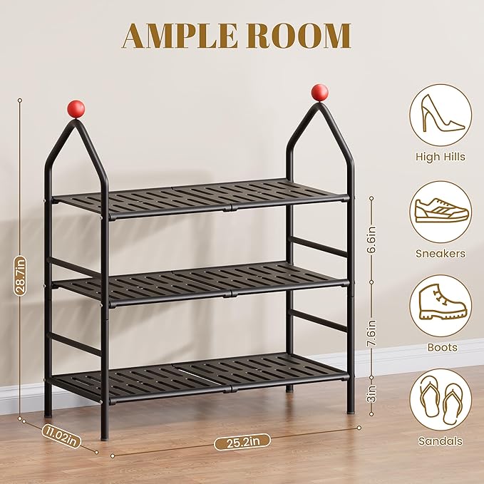 - 🧳 【Spacious Shoe Organizer for All Your Footwear】 This 3-tier shoe rack organizer provides generous open shelving to hold sneakers, heels, slippers, and boots. Whether used as a shoe rack for closet or a shoes rack for entryway, it keeps your daily footwear rotation neat, visible, and easily accessible—perfect for any busy home.
