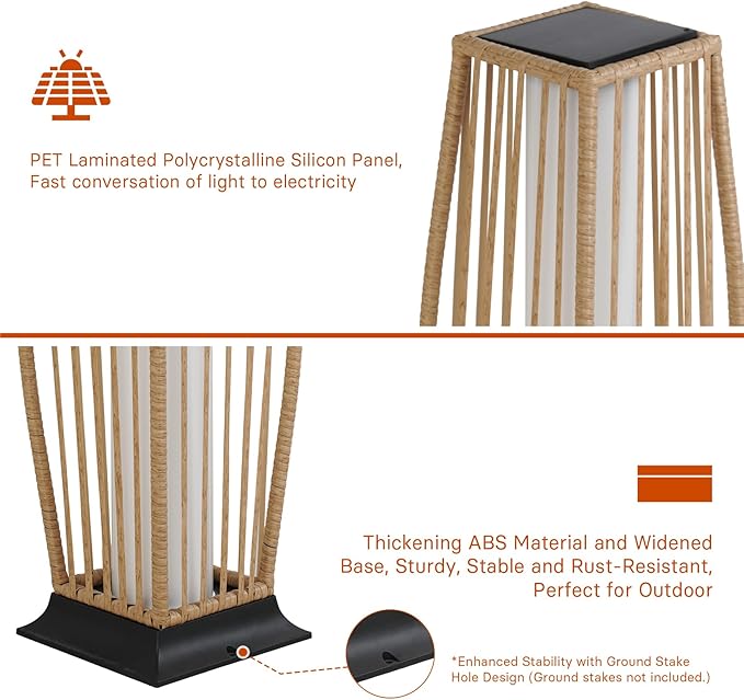 - MAINTENANCE-FREE: Our handwoven resin wicker is tested for year-round outdoor resilience while the inside frame is e-coated and powder coated with rust resistant steel. It makes the light sturdy but beautiful, easy to match with your patio, yard and poolside