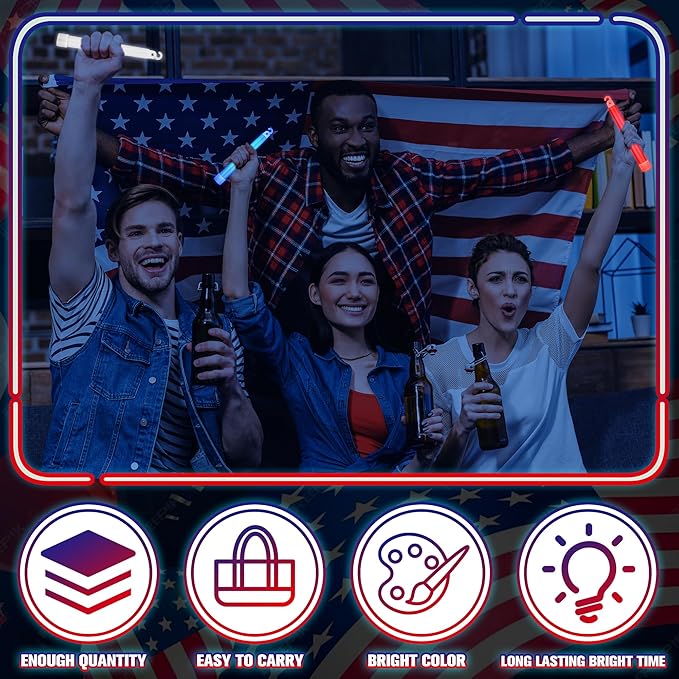 - Convenient Size and Quantity: measuring approximately 6 inches/ 15.24 cm, these blue,red and white glow sticks are easy to carry and handle; The package includes a bulk of 96 glow sticks, ideal for large gatherings or to be stored for next time use