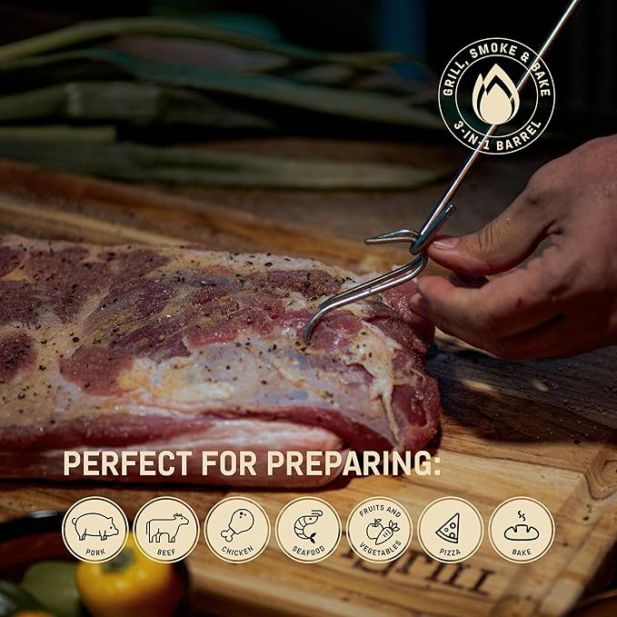 - EXPERIENCE INFINITE POSSIBILITIES WITH EFFORTLESS COOKING - The InGrill isn’t just a barrel smoker, it’s your 3-in-1 grill, smoker, and outdoor oven. Sear juicy steaks, slow-smoke tender brisket, ribs, or bake pizzas with unmatched flavor. From classic BBQ to gourmet creations, this versatile smoker handles beef, pork, turkey, chicken, seafood, vegetables, and even fruits to perfection. Endless possibilities, mouthwatering results every single time.