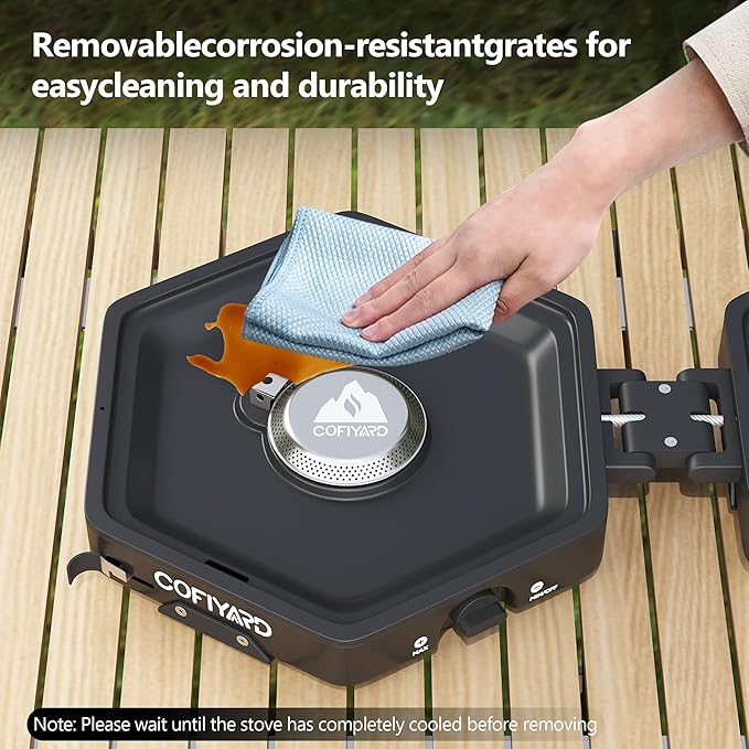 - Built to Last: The folding camp stove features a high-temperature-resistant steel body, ensuring it is robust and long-lasting. The stainless steel burners are corrosion resistant. Please note: It is normal for the burners to oxidize and turn black after high temperature cooking