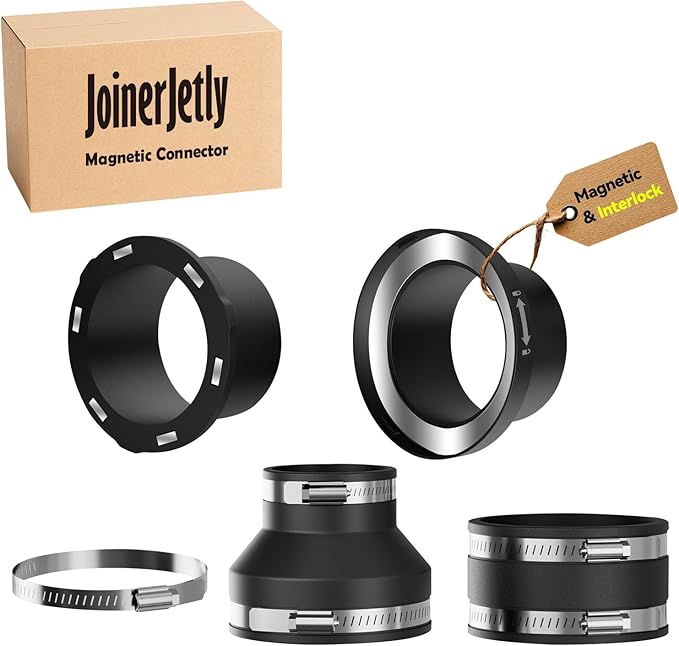 - 【Effortless Dust Collection Switching – Magnetic Quick-Connect System】 Say goodbye to fumbling with clamps! Joinerjetly's magnetic connection system lets you swap your dust collection hose between machines in seconds – simply snap and go.