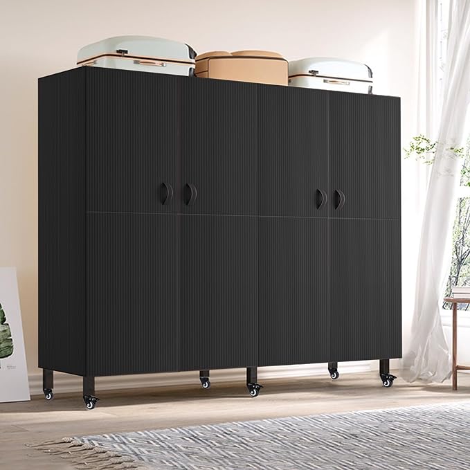 FPIGSHS Heavy Duty Clothes Rack with Magnetic Door 2000LBS Foldable Portable Wardrobe Closet for Hanging Clothing Rolling Garment Rack on Wheels for Bedroom Closet System (A(Black Door), 49.2in)
