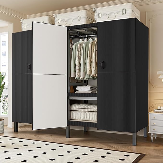 - 【wardrobe closet with doors】 Our portable wardrobe with magnetic doors that can be opened 180° and closed magnetically. You can create a protective barrier for your clothes without bending over to prevent pets from entering, so your clothes are always fresh and new. When guests enter your room, it is still tidy and clean to protect privacy.