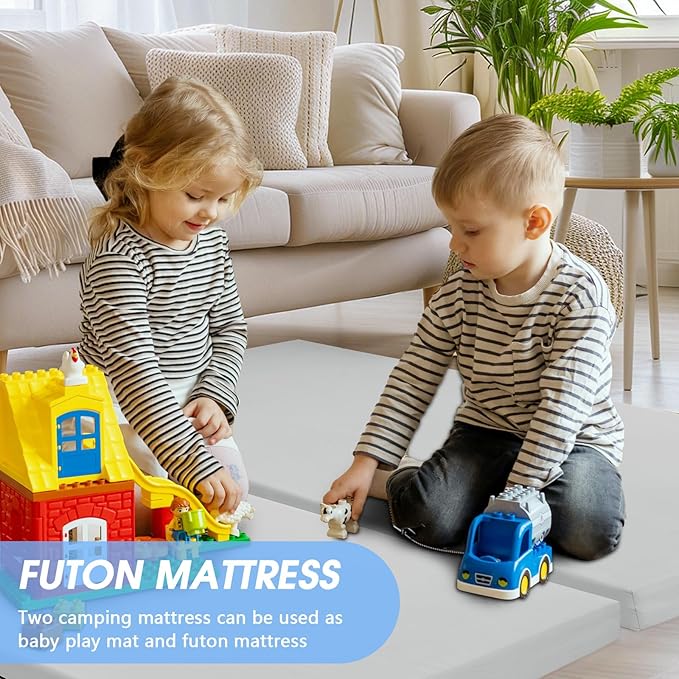 - WATERPROOF AND NON-SLIP BOTTOM, EASY TO CARRY: The sleeping pad can be rolled up and folded for storage without taking up space, the portable mattress comes with straps on the bottom to secure the mattress to camping beds, cribs, sofas, and other places of use. The straps ensure that the mattress stays in place. Rubberized dots on the bottom securely fit the camping bed so it won't move around and stays fixed in a comfortable position.