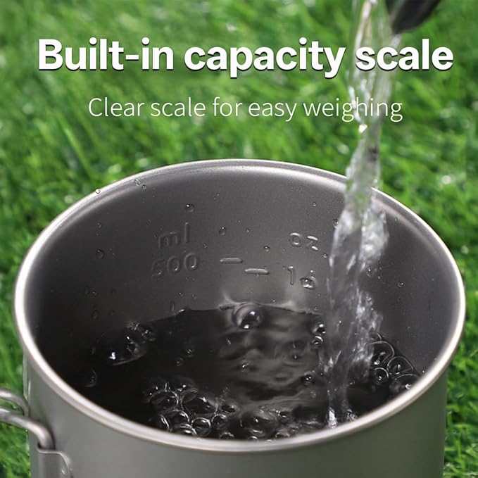 - Ultra light - Ultra light titanium cookware, this camping pot set weighs only 4.79 ounces/136 grams. This small camping pot will not bring any weight burden to your military supply bag.