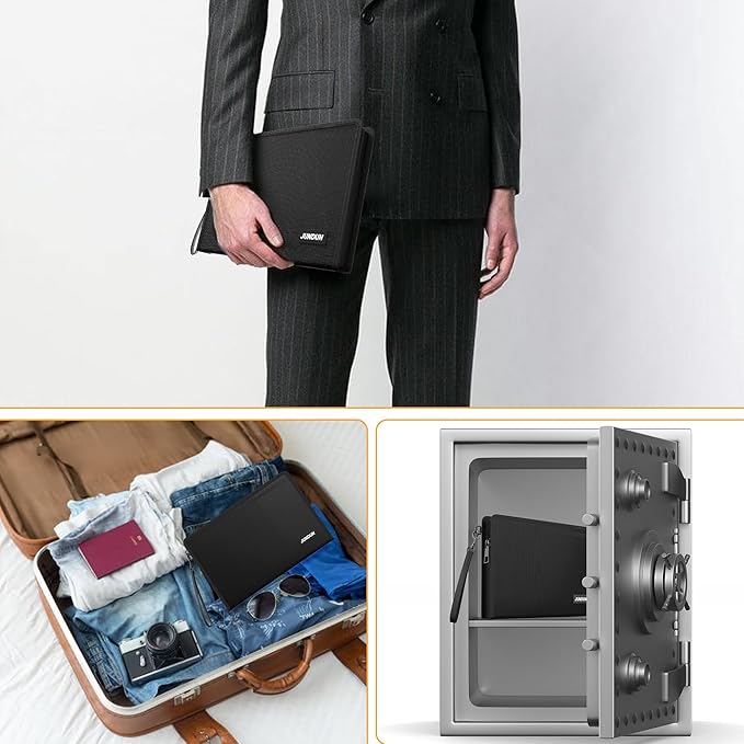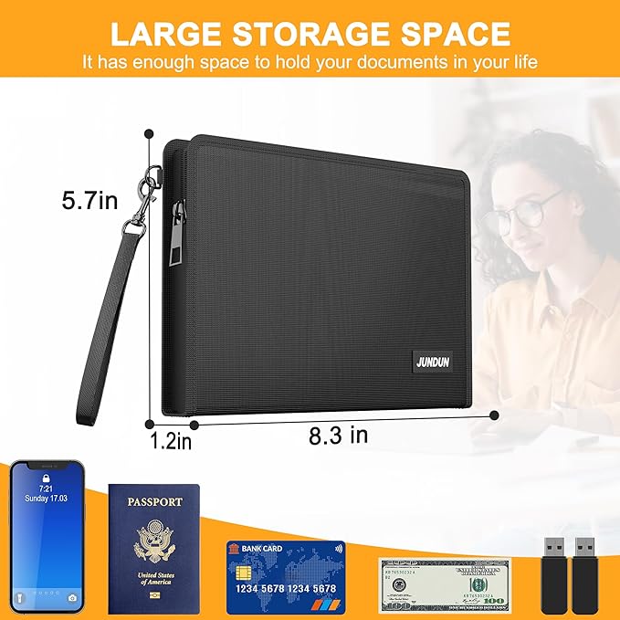 - Large Opening Design:the size is 8.3x5.7 inch .fireproof cash bag is thicker than ordinary zipper bags .It is large enough to store your important documents such as money ,cash ,passport ,receipt and bank cards.Fireproof bag for money has a large opening allowing, effortless insertion and removal of documents without folding or struggling .This easy-access design, combined with robust fireproofing, makes it the secure and practical solution for safeguarding your essential papers and valuables