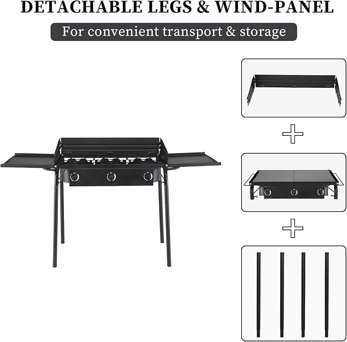 - 【Portable & Adjustable Height】 With detachable legs and wing nuts and a portable bag, it’s easy to set up, carry. Use it on a tabletop or on the ground for 2 adjustable height models, which ensures the perfect cooking position anywhere.