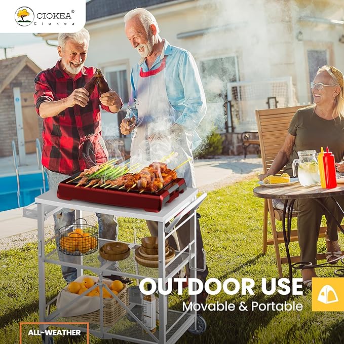 - Instant Setup & Space-Saving Design: Our 90% pre-assembled folding grill table unfolds in just 10 seconds, transforming into a spacious surface for all your grilling essentials. When not in use, it collapses neatly into a compact size, fitting perfectly in narrow spaces.