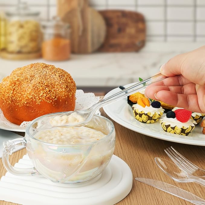 - 【Suitable for All Occasions】These clear plastic spoons are ideal for parties, events, and everyday use, perfect for serving everything from appetizers and desserts to soups and main courses.