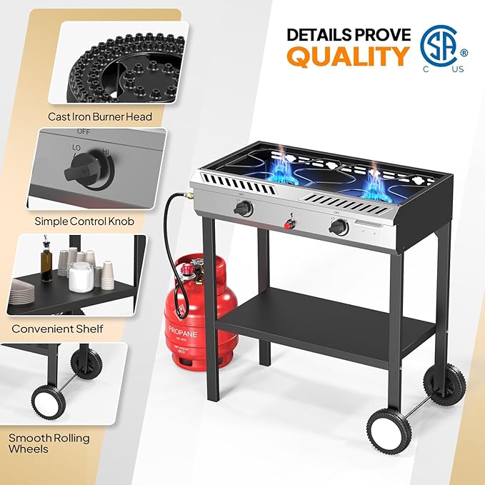 - 【Versatile Cooking for Any Meal】 Works with stockpots, woks, grill pans, and more. Perfect for frying, boiling, grilling, or stewing—ideal for BBQs, soups, and stir-fries. (Note: Without the propane tank)