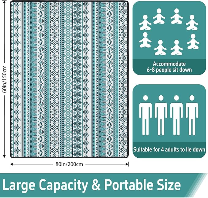 - Extra-Large Size: The Picnic outdoor blanket measures 60x80 inches, providing ample space for 3-6 adults, making it perfect for family gatherings, picnics, or relaxing with friends and pets.