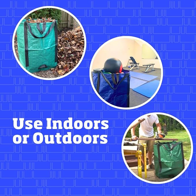 - MULTI-USE: Use both indoors and outdoors. Whether it is projects in your yard or garden, or storing that extra bedding or holiday decorations, these lawn bags heavy duty are up to the task. The versatility of the DuraSack makes it perfect for garden or yard waste, storm debris cleanup, demolition, home and garage storage, construction and contractor use, or even pop up trash cans for parties.