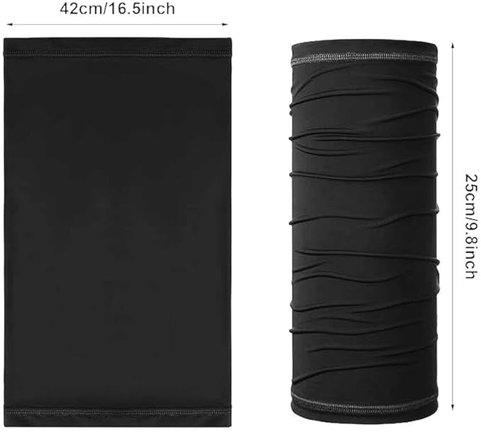 - Adjustable One-Size-Fits-All Design (9.8"x16.5") Reinforced anti-fray edges and stretchable fabric create perfect fit for men/women. Wear as sun-protective face mask, neck scarf, bandana, pirate cap, or lightweight balaclava - ideal for hiking, motorcycling, fishing, and yoga.