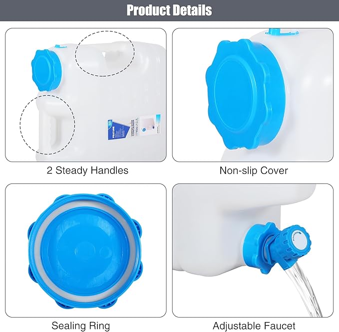 - Outdoor & Emergency Use: The portable water container can only store water (Recommend temperature 0-40℃). Perfect for outdoor activities, like camping, picnic, hiking, travel also for home household and emergency preparedness