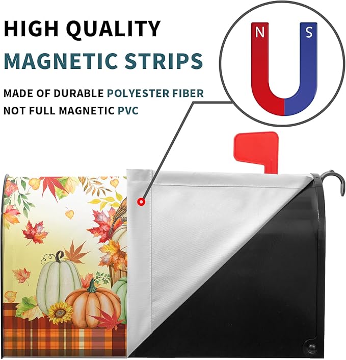 - 【Large Size】Designed to fit standard mailboxes, this fall pumpkins maple leaves floral decorative letter box cover measures 25.5x21 inches. The magnetic backing ensures a secure and easy installation, making it a perfect fit for most mailboxes without any hassle