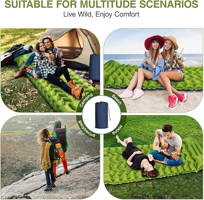 - Only 30s Built-in Foot Pump Inflation: The camping mat has a built-in pump and takes only 30-60 seconds to fully inflate with a simple step or press. Quickly deflates in just 1 second. Self inflating sleeping pad is convenient and easy to use, no need to inflate with your mouth, hands or carry a pump. Upgraded air valve design, no need to worry about air leaking!