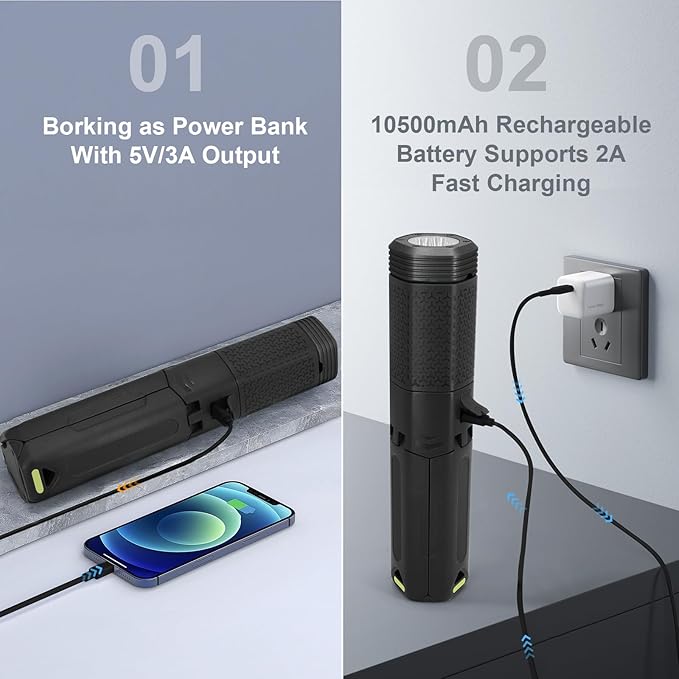 - 【10500mAh Rechargeable Battery】 Our camping lantern have a built-in 10500mAh rechargeable battery to keep you lit for extra long periods of time. In addition,the camping lantern also has the function of a charging bank,which can charge your mobile phone,tablet computer, and Bluetooth headset,ensuring that you will not lack of electricity when camping outdoors