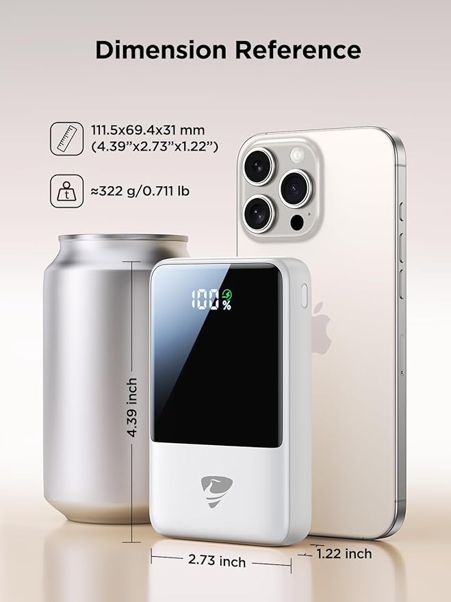 - 20,000mAh HIGH CAPACITY: With this 20,000mah portable charger, you can charge your phone multiple times! It charges iPhone 14 about 3.8 times, Samsung Galaxy S23 Ultra 2.5 times, Google Pixel 7 about 2.7 times. Perfect for those who need frequent charging on the travel. Dimentions: 4.39"*2.73"*1.22", weight: 11.38oz(0.71Ib)