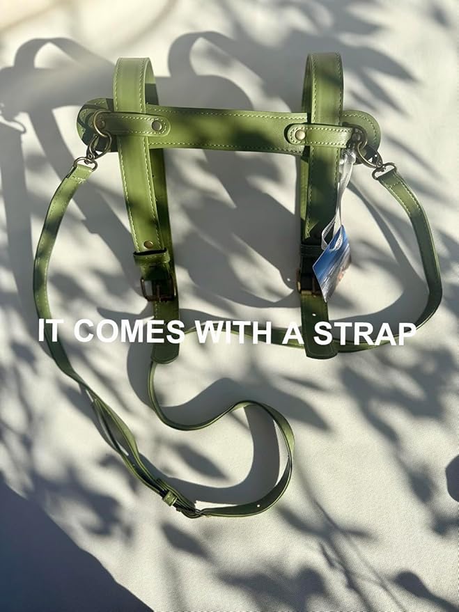 - Includes: 1 white canvas mat, faux leather handle/should strap, and webbing strap