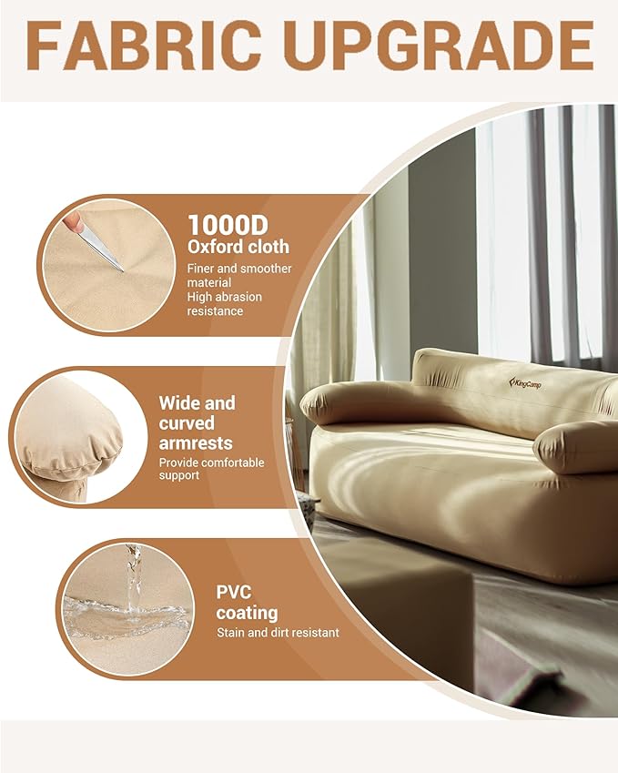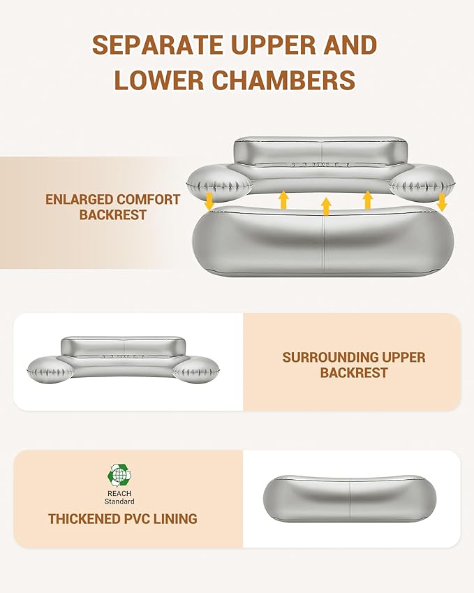 - All-in-One Camping Comfort Kit:Includes a 2-person inflatable couch and a portable electric air pump – everything you need for a quick, cozy lounge setup at the campsite, beach, or backyard.