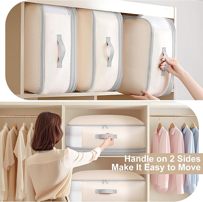 - [4-Layer Compression Bags] Our 130L ultra space-saving self-compression organizer features a unique 4-layer compression system, offering not only more storage capacity than standard 2-layer designs but also greater flexibility. It’s perfect for blanket storage, comforter storage, pillow storage, down coat storage and bulky items, allowing you to optimize every inch of space in your closets or underbed storage containers