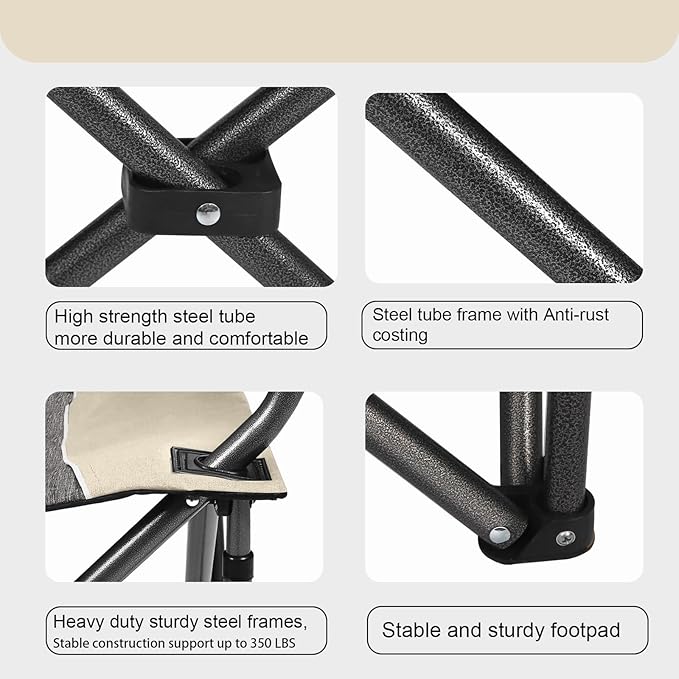 Northroad Oversized Portable Camping Chair, Full Padded Outdoor Folding Chair Support 350 LBS, Heavy Duty Lawn Chair with Cup Holder, Cooler Bag, Lumbar Support, Head Pocket for Adult-Beige