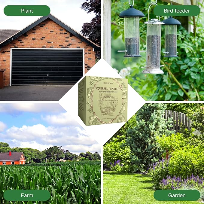 - Versatile Indoor & Outdoor Squirrel Repellent - This squirrel repellent can be used in various locations such as attics (preventing wire damage), gardens (stopping digging), cars (protecting engines), and patios. It's weather-resistant for year-round protection.