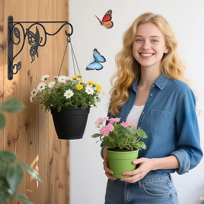 - ?�Complete 2-Pack Set with Guarantee?‘The package includes 2 pcs 12"×9" hanging plant brackets with 4 screws and rubber plugs. Compared to flimsy alternatives, our hooks offer industrial strength + decorative appeal. Love them or contact us for a hassle-free solution!