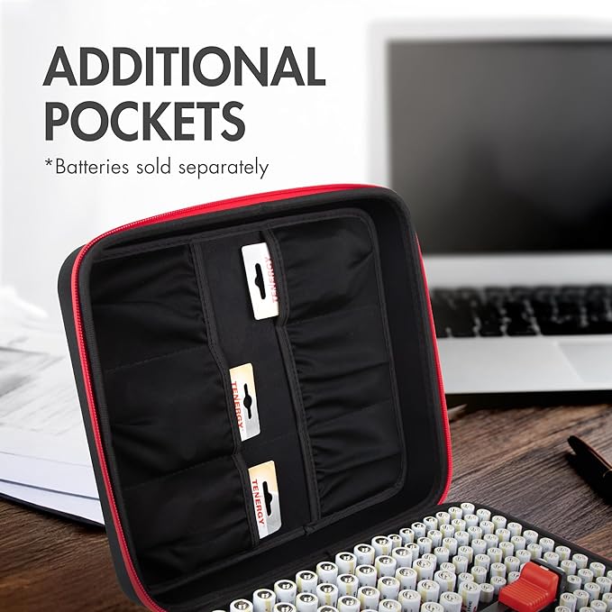 - Durable battery case to organize and protect up to 200 batteries for storage.
