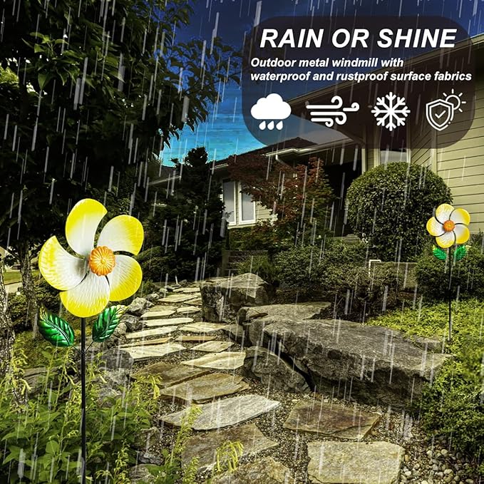 - All-Season Durability: Crafted from heavy-duty galvanized steel with rustproof powder coating, these outdoor windmill sculptures withstand 50+ mph winds and UV exposure. The weighted base ensures stability, while the interlocking metal rods prevent tangling—perfect for year-round garden decor.