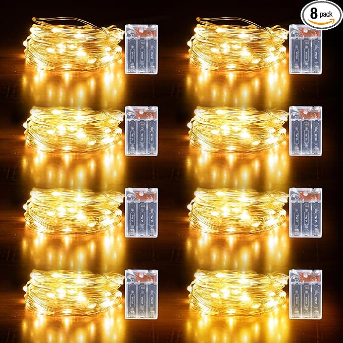 - 8 Pack of Fairy Lights: Fairy Lights Powered by 3 AA batteries (not included), each string of Fairy Lights has 16.4ft 50 energy-efficient Leds. The upgraded design has significantly extended the working hours of Fairy Lights.