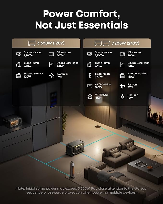 - Powerful 120/240V Output: Run all your essentials from your F3000 at 120V, or pair two power stations at 240V for demanding appliances.