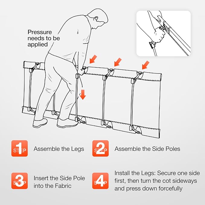 - Easy to Install: The cot is designed to be simple and easy to use and can be assembled in minutes, saving time.