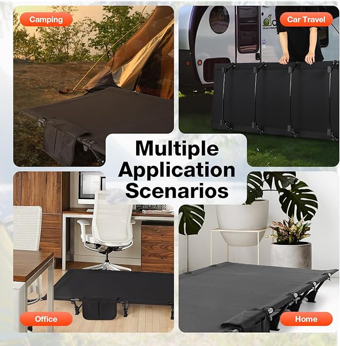 - Durability: The camping bed is made of high-density Oxford fabric, which is wear and tear resistant, with a maximum weight capacity of 330 lbs.