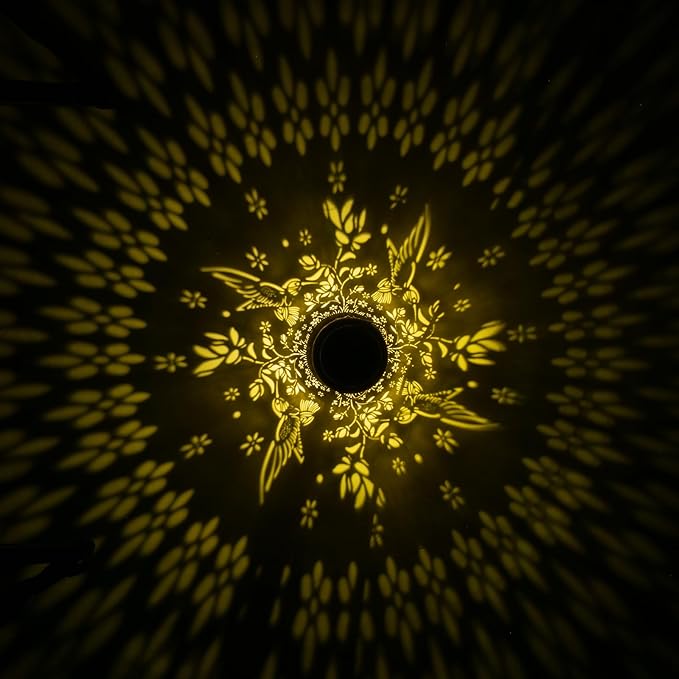 - Elegant Hummingbird Design: Add charm and warmth to your garden with this vintage-inspired solar lantern. Featuring a golden copper finish and a hollowed metal design, the lantern casts soft, glowing light with graceful hummingbird patterns, creating a cozy and romantic atmosphere after dark