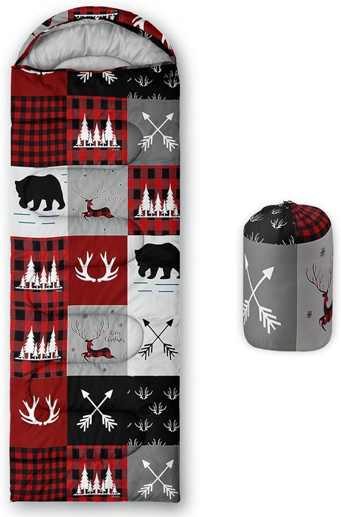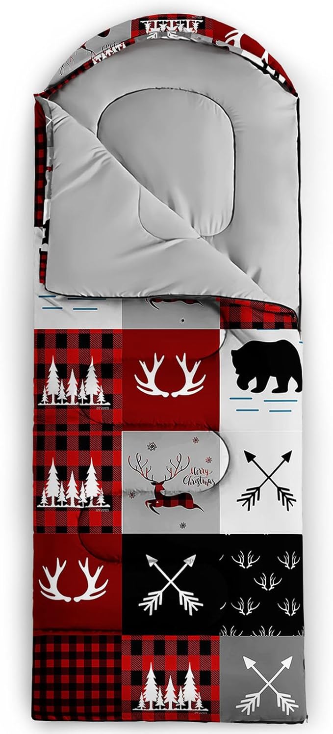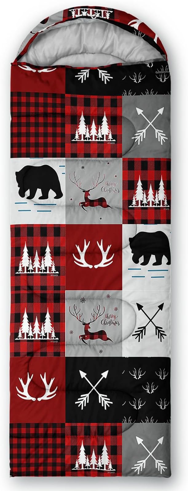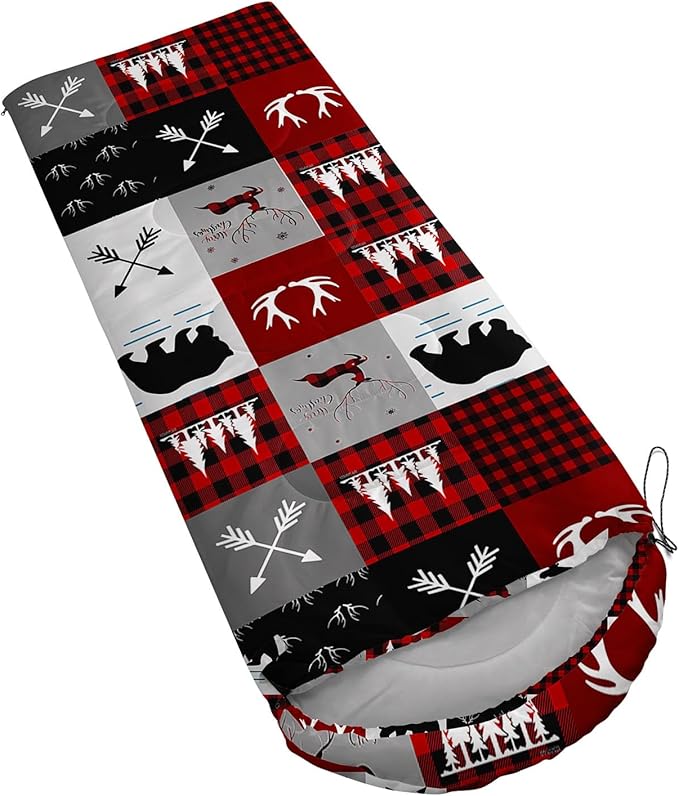 - Unique Deer Design:This Deer pattern sleeping bag is made of 3D digital printing with vibrant colors and patterns,size: 31W x 90L inches,temperature range: 32℉-77℉ (0℃-25℃),it also also have a weather resistant waterproof design to keep you warm and prevent you from any dampness,can be used in 3 seasons