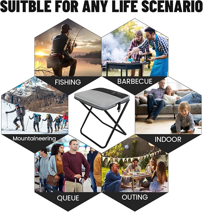 - [Multi-scenario use] Camping chairs are small and can be carried with you. When you need it, you can unfold it and use it. It is very convenient. It is a small folding chair for camping, picnics, barbecues, fishing, strolling, high-speed rail, queuing, and travel.