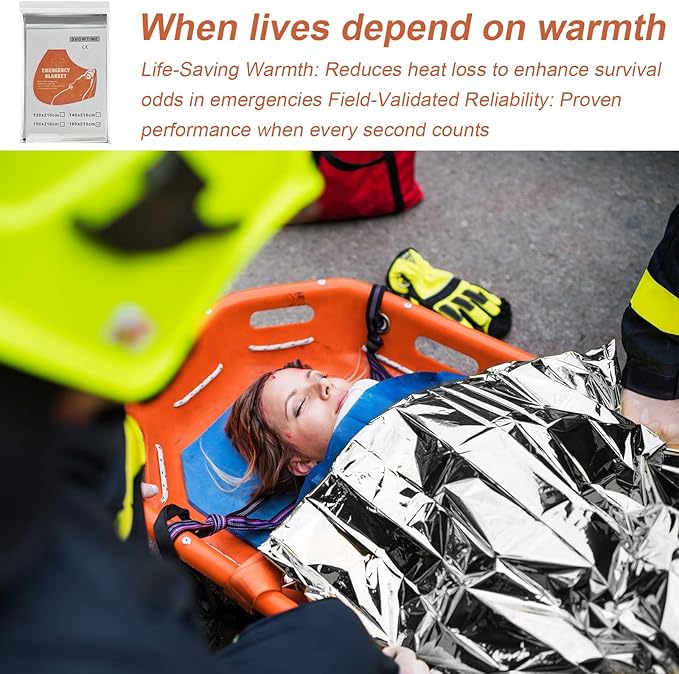 - 🔥【Superior Heat Retention】 Advanced dual-sided aluminized Mylar reflects up to 90% body heat to prevent hypothermia Perfect for emergency cold weather survival situations