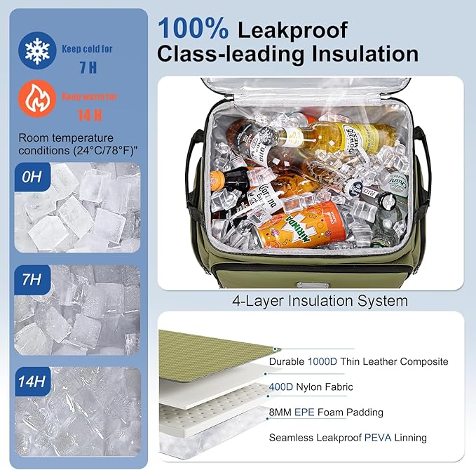 - 【Leakproof & Insulated Backpack Cooler】Backpack cooler Crafted with 8 mm foam insulation padding, Soft cooler backpack maintains food temperatures for up to 16 hours. Backpack ice chest adapt the seamless hot pressing process ensures a leak-proof silver PEVA lining, Further reinforced by smooth horizontal zippers to prevent leaks. Backpack coolers insulated leak proof ideal for beach picnics, hiking, camping, travel, boating, baseball games and work.