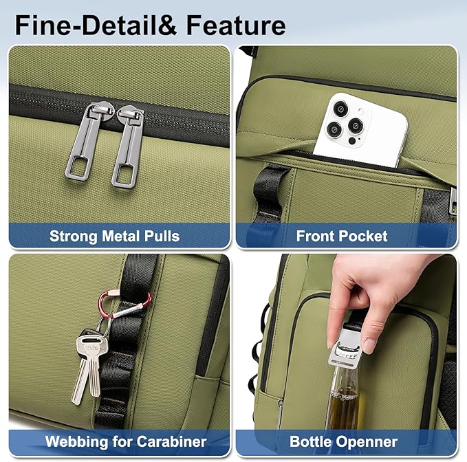 - 【Unique Functional Design Cooler Bag】backpack cooler leak proof has a large front pocket offers easy access to tableware, while the picnic backpack is equipped with a stainless steel bottle opener for effortless drink access. insulated backpack for men has 8 webbing holes on the front allow for hanging keys, water bottles, and tools. The top of lunch backpack includes a stretch cord for hanging sweaters or mats. Dual handles on each side ensure ease of carrying and durability.