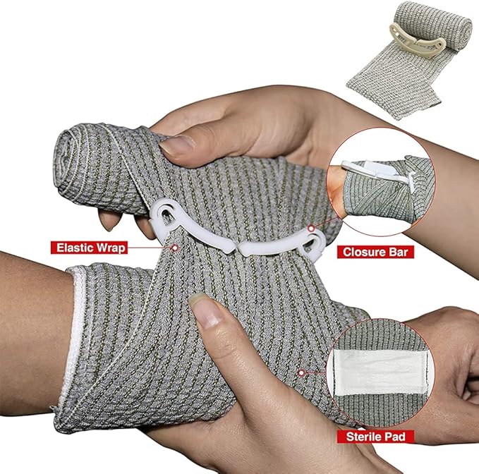 - [Portable Carry] - Compact Emergency kit with lots of stuff. This kit contains the most use friendly, compact and popular survival and first aid supplies for massive bleeding control on the market, which includes: tactical pressure dressing, and compressed gauze