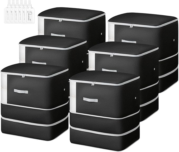 Comforter Storage Bag - 130L Large Capacity Blanket Storage Bags 3-Layer Ultra Space Saving Self Compression Organizer, Washable Compression Bags for Storage Comforter Blanket, 6-Pack, Black