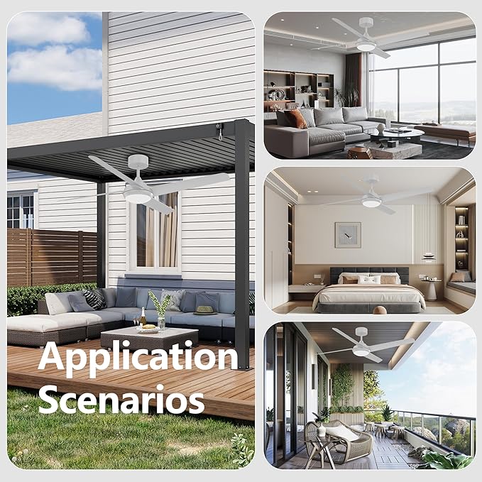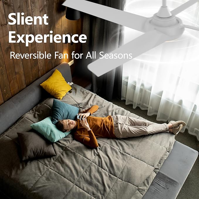 52 Inch Ceiling Fan with Light and Remote, 4 Blades, Quiet DC Motor, Reversible Fan with Dimmable LED Light, for Bedroom Living Room (White)