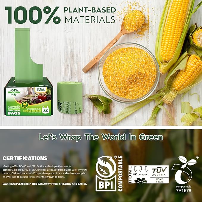 - Sustainable Material:Made from a premium PLA+PBAT blend, these 3 gallon compost bags break down completely in compost systems within 180 days, turning into nutrient-rich humus. Unlike regular bags, they leave no harmful residues, making them perfect for food waste bags and environmentally-conscious households.
